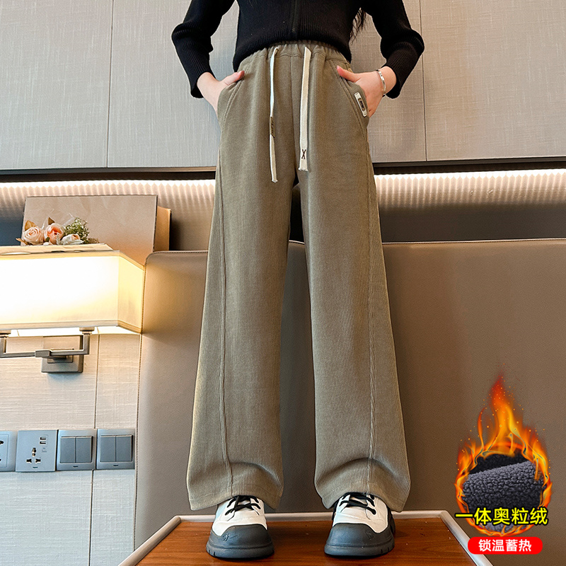 【编号C977】FX21600-32-儿童刺绣M加绒打底裤墨绿色-QQZ