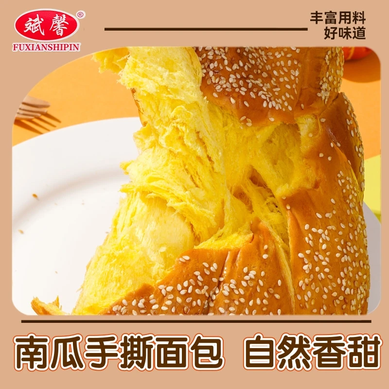 一口沦陷的南瓜面包!金丝南瓜小方面包外软内润,南瓜馅料扎实饱满,每一口都能吃到真实的南瓜颗粒,麦香与果香融合,好吃又有料。