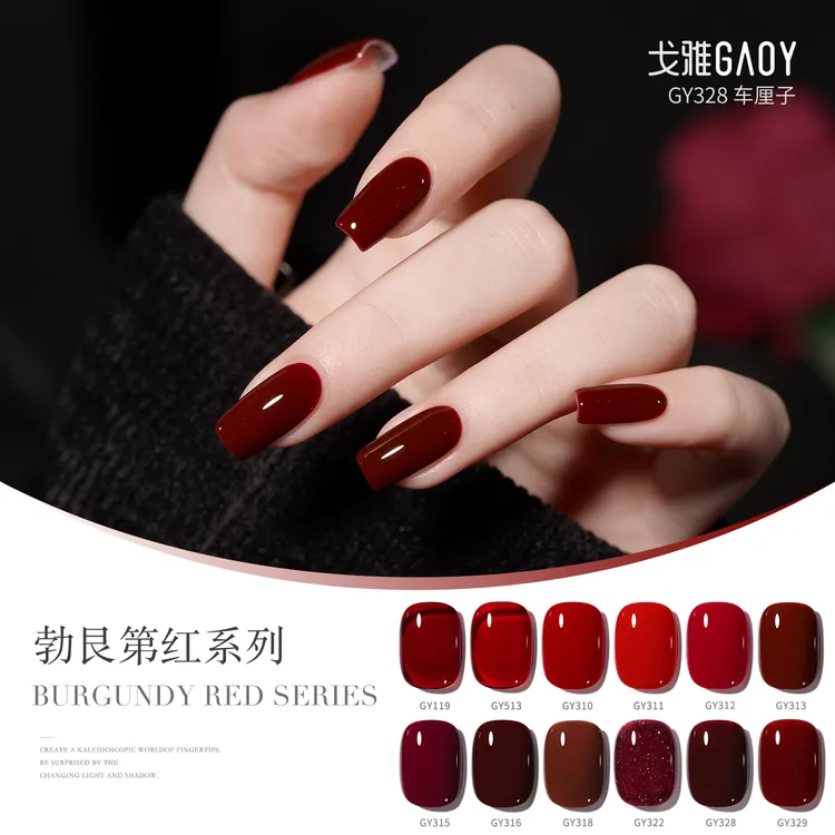 安可拉红色指甲油胶,车厘子酒红色美甲#指甲油胶#指甲油饰品